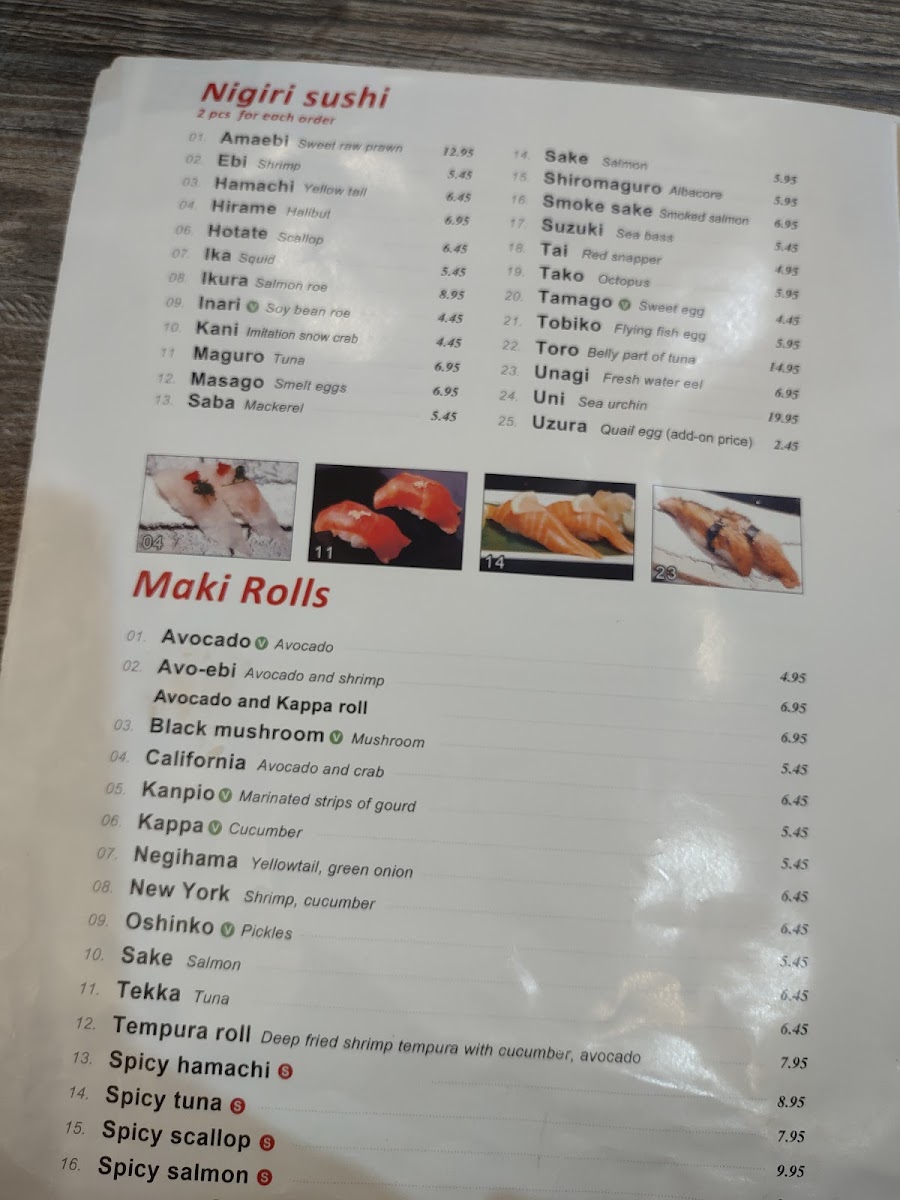 Sush came put quick and was reasonably priced! The rolls are pretty big so my limit of 4 was too much depending on what roll(s) you get. Will be back.