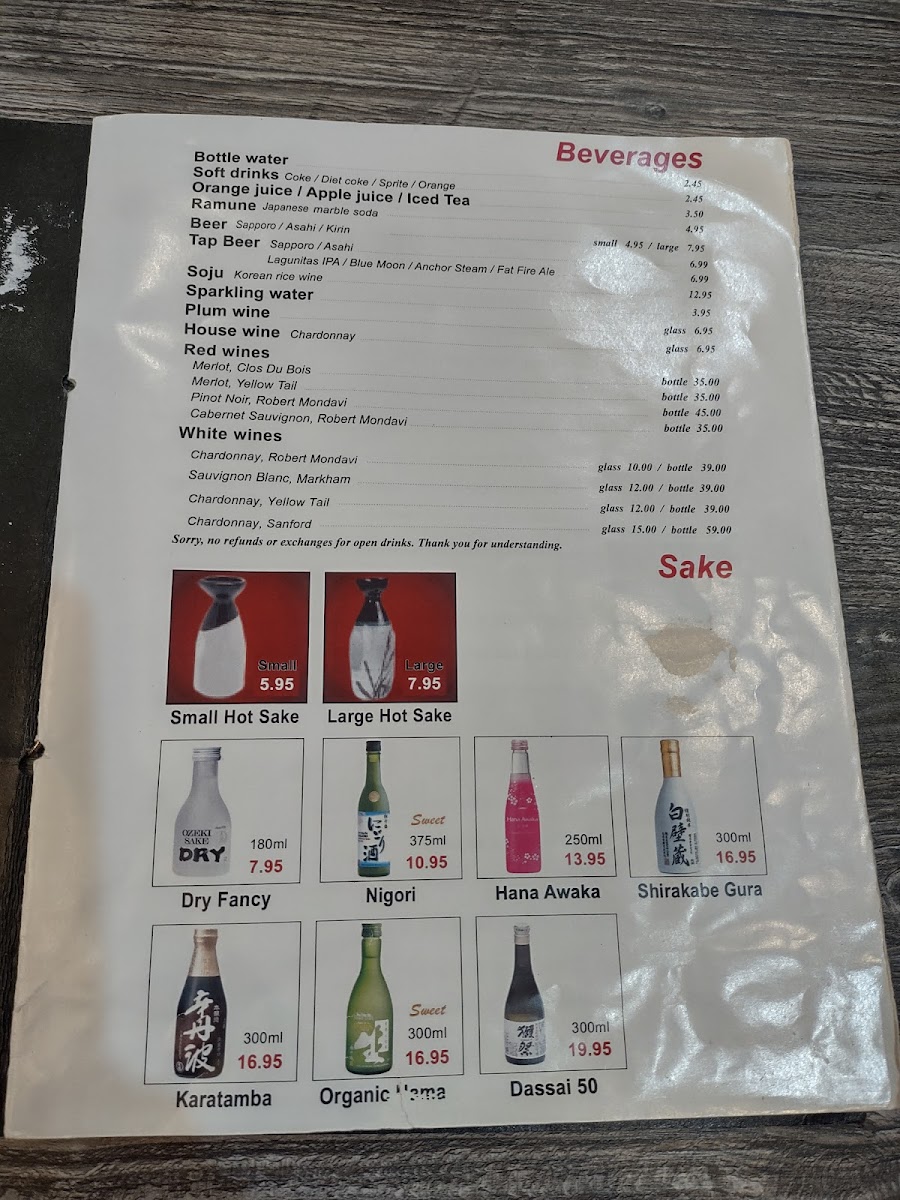 Very friendly service, the waitress was so nice and attentive, and kept coming back to check on us. We're all happy with our food. The food was tasty and the fish was fresh. The portion was generous and the price was quite reasonable. It's definitely one of the best Japanese restaurant in Concord. We'll surely come back. As a added bonus, they open until.11:30pm.